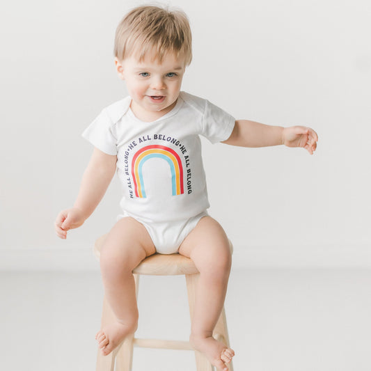We all Belong Baby Onesie